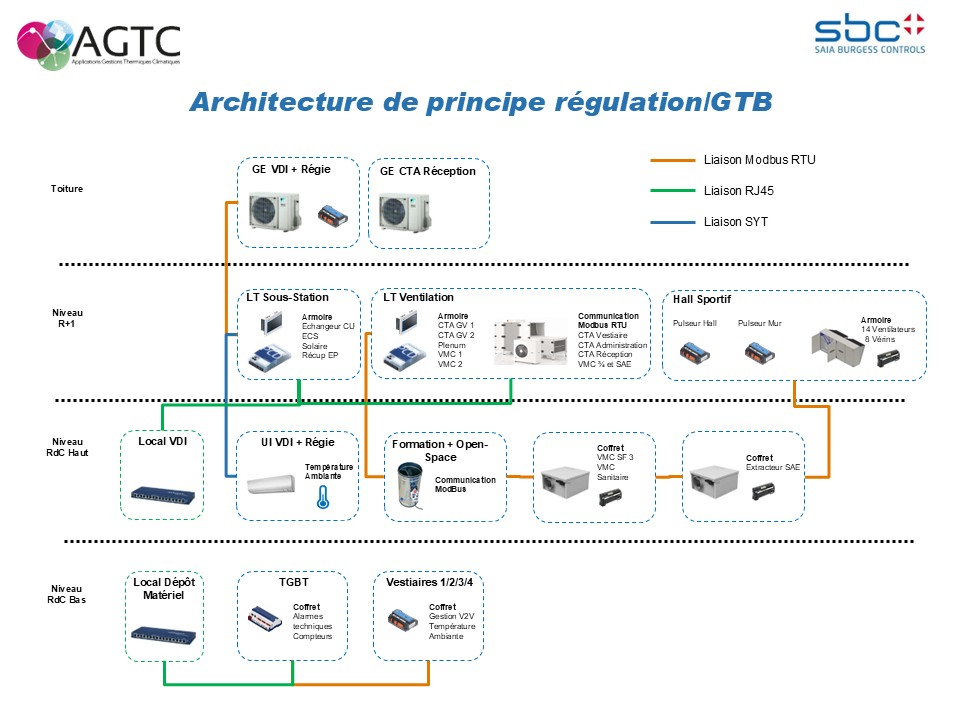 Ces registres communiquent avec la GTC à partir d’une liaison Modbus jusqu’à l’automate de ventilation situé en local technique au R+1.